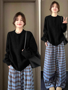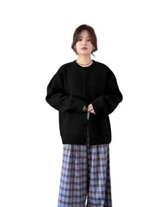 黑色针织开衫女春秋季宽松慵懒风休闲感外搭厚毛衣外套上衣冬