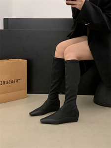 内增高极简高弹裸感弹力靴女2025秀气袜靴显高瘦瘦靴平底短靴
