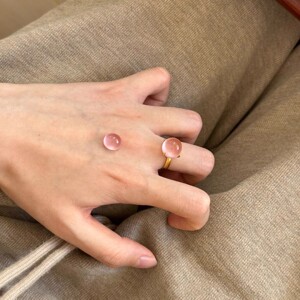 芙蓉冰透四爪镶嵌爆款莫粉色鸽子蛋戒指精致气质清冷感指环批发