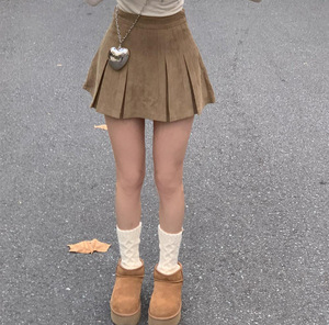 韩系仿羊羔毛皮毛一体百搭可爱马甲背心高腰百褶裙裙裤套装88768