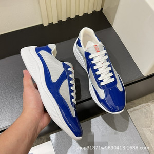 欧洲牛皮外贸高端新款时尚拼接休闲板鞋透气系带广州男鞋真皮潮鞋
