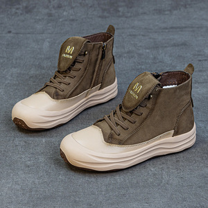 头层牛皮厚底高帮女皮靴秋冬新款复古手工文艺短筒拼色休闲马丁靴