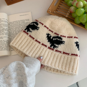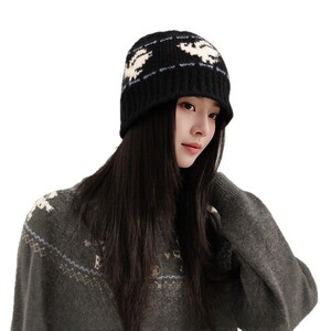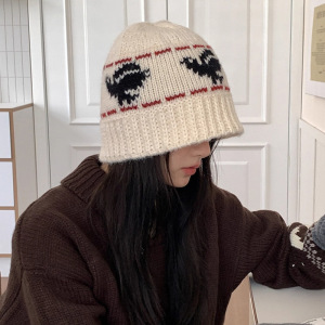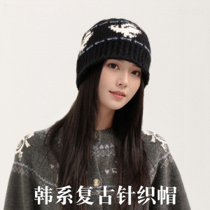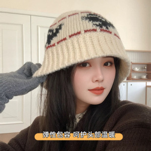 新款女士复古针织毛线帽冬季韩系百搭显脸小盆帽保暖防寒渔夫帽子