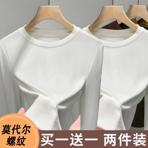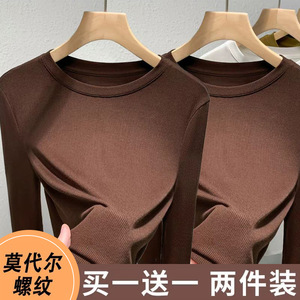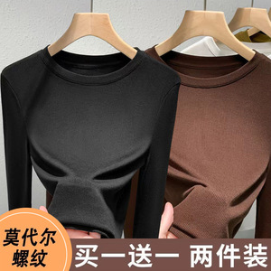 圆领莫代尔螺纹内搭纯色打底衫女秋季修身洋气长袖t恤上衣服25秋