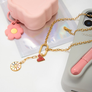 万兴欧美不锈钢粉色滴油爱心吊坠流苏Y字链项链女士高级感首饰