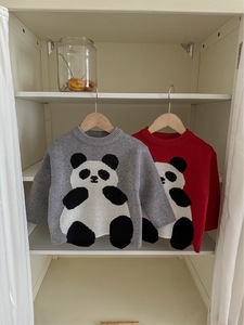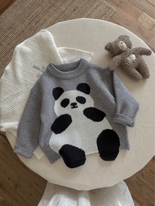 儿童熊猫圆领针织毛衣休闲上衣2025新款男童毛线衫潮秋装宝宝外套