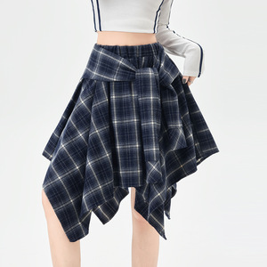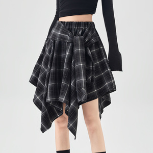 实拍 复古绑带不规则格子半身裙女2025秋季高腰显瘦休闲a字短裙