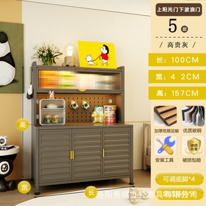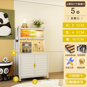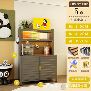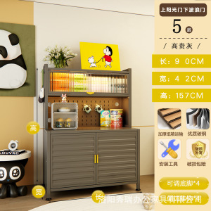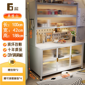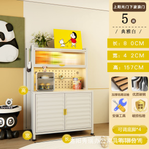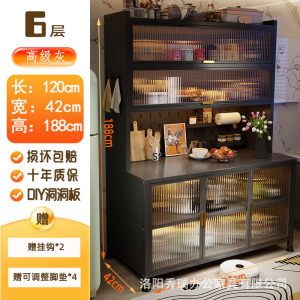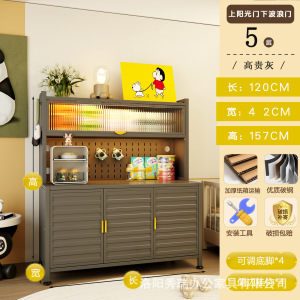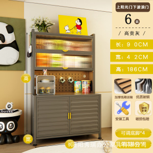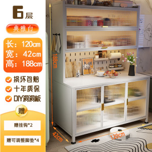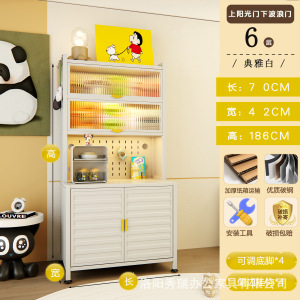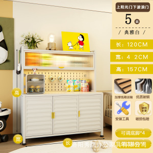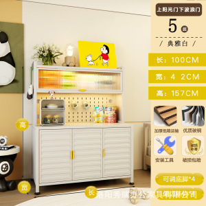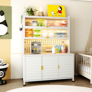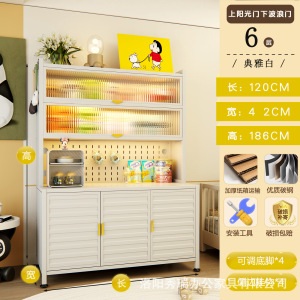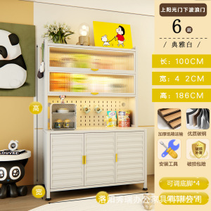 新款厨房法式波浪门置物餐边储物落地多层靠墙一体多功能收纳柜子