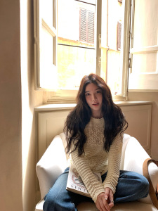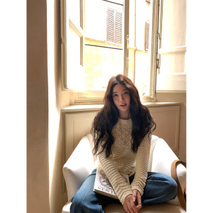 施薇靓 雕刻艺术 手工钩花镂空慵懒随性圆领毛衣百搭长袖针织衫