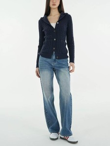 Jim Kennet麻花针织纽扣修身连帽开衫外套
