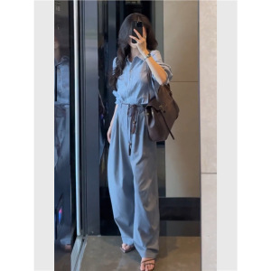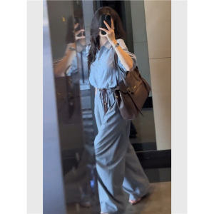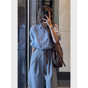 深圳南油早秋韩系上班通勤穿搭又酷又飒Polo领衬衫搭配阔腿裤套装