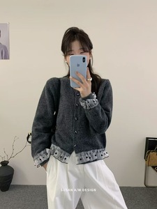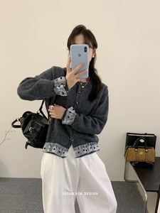 苏珊 韩系时尚甜美蕾丝拼接针织外套2025秋冬新款软糯毛衣27552