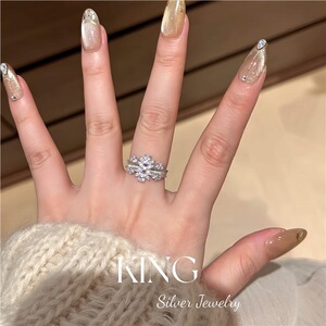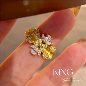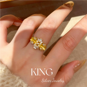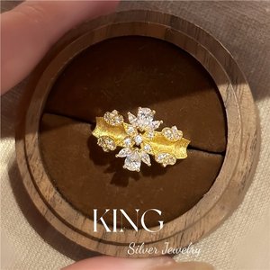 蕾丝星辰 | S925银镀金拉丝镶钻复古时尚高级感气质百搭纯银戒指