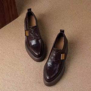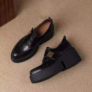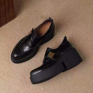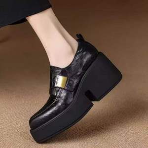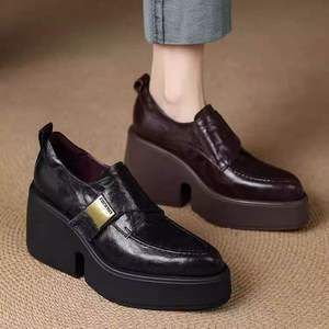 2025秋新款厚底尖头粗跟单鞋女英伦风小皮鞋软底软面松糕底乐福鞋