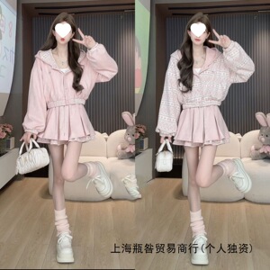 韩版学院风拼接卫衣外套女2025秋季新款收腰显瘦A字半身裙两件套