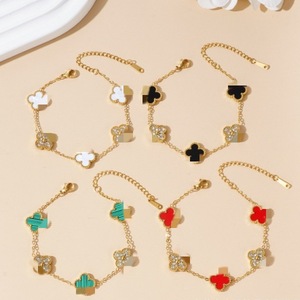 高版本13MM镶钻四叶草手链女五花贝母轻奢百搭钛钢不掉色手饰保色