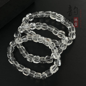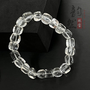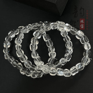 天然白水晶不规则方糖豆手链 diy原创饰品手串白水晶散珠配件隔珠