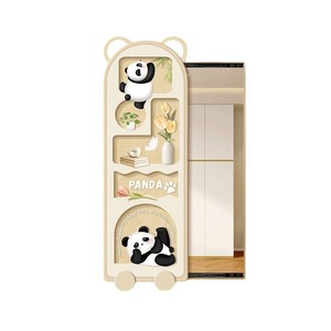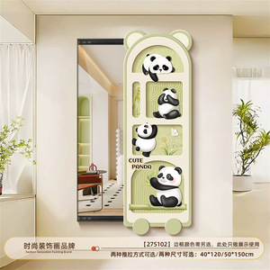 奶油风全身镜壁挂隐藏式穿衣镜装饰画熊猫卧室可推拉试衣镜挂画