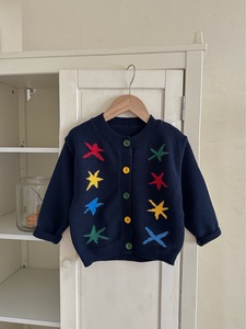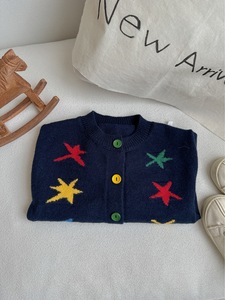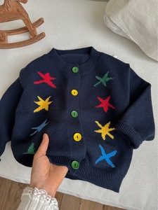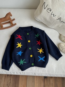 儿童毛衣开衫秋冬新款小女孩彩色星星针织衫外套中小童洋气衣服