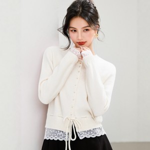 G6685单排扣系带纯色针织衫蕾丝下摆拼接假两件设计感秋冬别致女