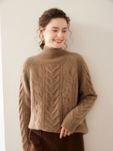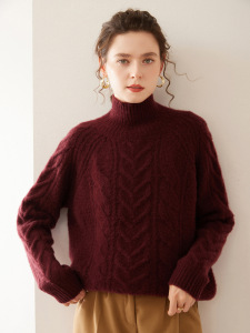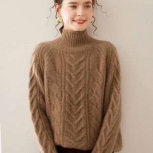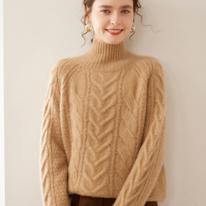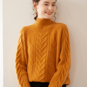 五股重磅加厚羊绒衫女秋冬麻花套头山羊绒毛衣针织打底衫内搭