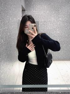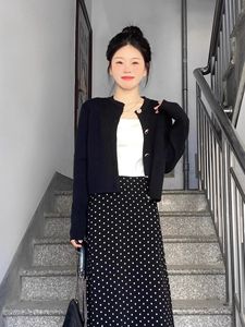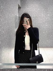 法式小香风金扣黑色针织开衫女2025秋季新款短款圆领毛衣外套上衣