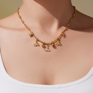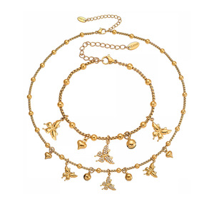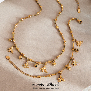 摩天轮立体蝴蝶多爱心夹珠链项链手链不锈钢小众设计新款首饰套装