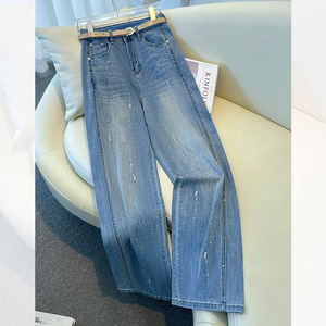2025新款高端镶钻阔腿牛仔裤女春秋季宽松显瘦窄版烫钻垂感直筒裤