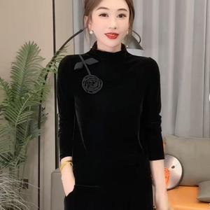 一件代发直播爆款2025秋季款百搭洋气一支花朵丝绒气质女人味上衣