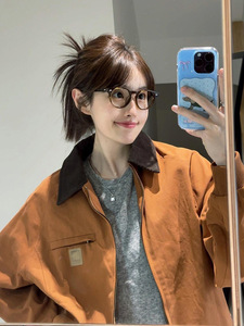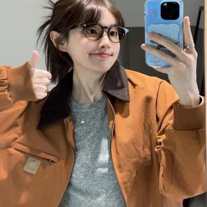 小众复古工装外套女2025秋新款撞色拼接翻领夹克巴恩风情侣上衣