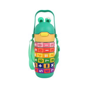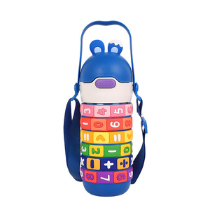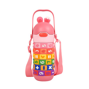 创意儿童益智数字杯高颜值316不锈钢保温杯小学生可爱背带吸管杯