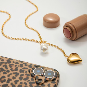 万兴欧美跨境锁骨链不掉色爱心吊坠玻璃珍珠吊坠流苏Y字链项链女