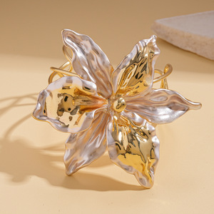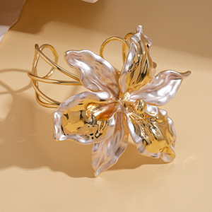 欧美夸张金属感花朵线条开口手镯臂环跨境个性小众高级感气质手饰