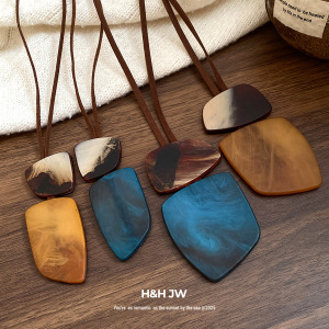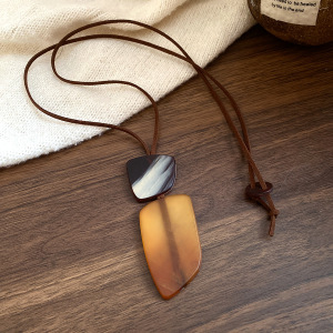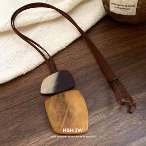 不规则方形牛角板项链民族风复古简约毛衣链轻奢高级感小众项饰女