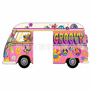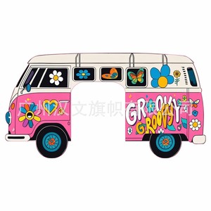 跨境新款派对涂鸦风格卡通房车异形旗装饰场景布置氛围感拍照旗帜
