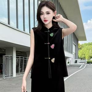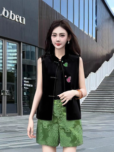 2025新中式重工立体彩色葫芦手工钉珠真丝丝绒立领宽松气质马甲