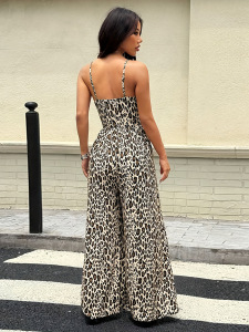 60315JBZ 芙瑞特2025夏季新品TEMU爆款印花露背豹纹欧美连体裤 女