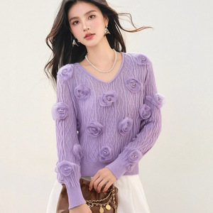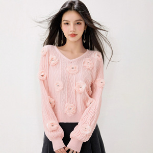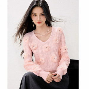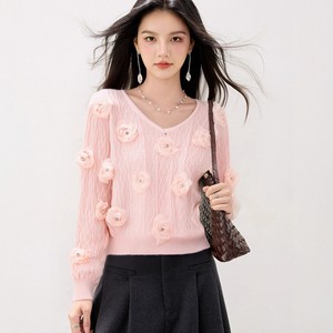 R9316小众气质甜美少女毛衣长袖秋冬新款网红优雅设计感上衣粉色