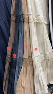蕾丝边拼接百褶半身裙女2025秋新款中长款显瘦蛋糕裙a字大摆长裙