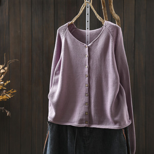针织开衫外套2025新款女早秋季小个子V领简约纯色文艺百搭针织衫