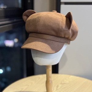 2025秋冬新款植绒布猫耳朵八角帽女甜美小众显脸小百搭鸭舌画家帽