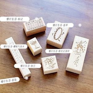 手帐印章木质图章打卡装饰功能复古记录装饰木质时间轴工具素材
