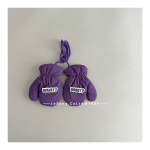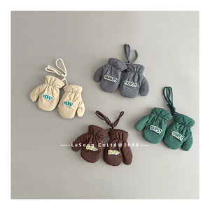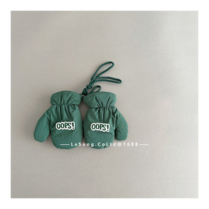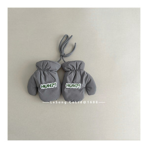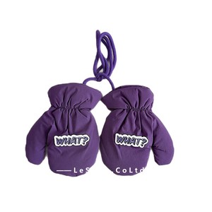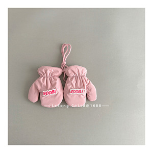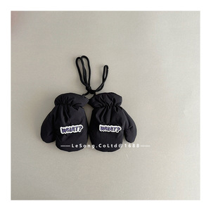 儿童手套冬季ins可爱字母滑雪手套宝宝保暖防风防水挂脖手套