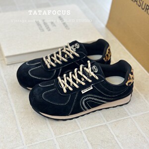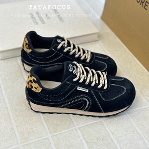美式复古德训鞋女ins潮2025早秋新款小众设计感豹纹休闲运动鞋女