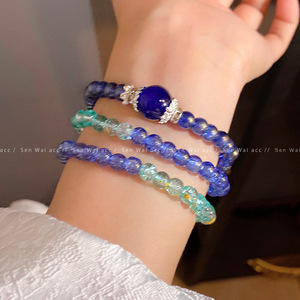 新中式清冷感清绿三圈叠戴手串女时尚气质百搭高颜值渐变配饰批发