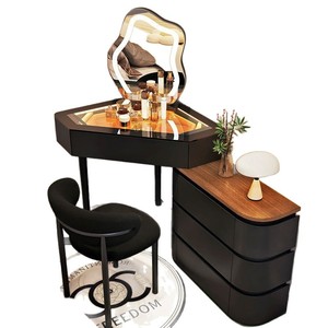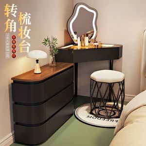2025新款实木三角梳妆台现代简约奶油风床尾转角柜化妆桌斗柜一体
