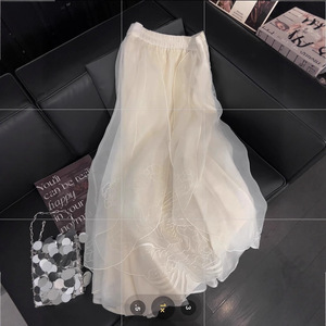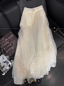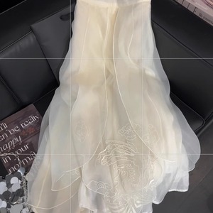 原版质量 新中式重工刺绣半身裙女白色仙气温柔风新款百搭中长款