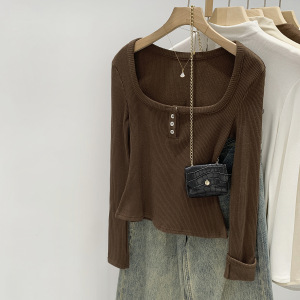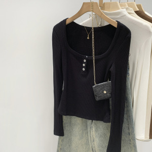 净色设计感穿搭方领内搭打底针织衫女装韩版秋季2025新款长袖T恤