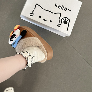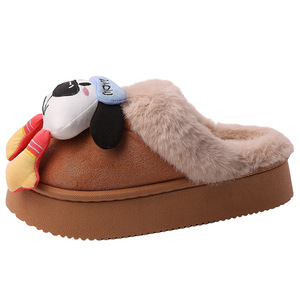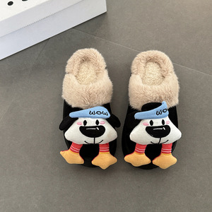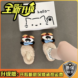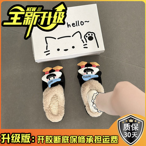 时尚卡通史迪仔绒面拼接毛绒拖女2025秋冬季新款居家百搭保暖棉鞋
