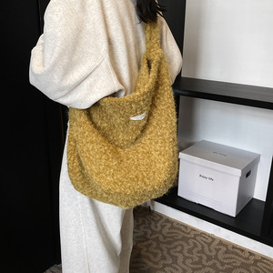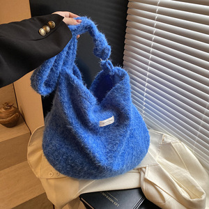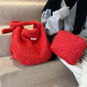 包包女简约毛茸茸通勤大容量单肩腋下包2025新款两件套单肩斜挎包